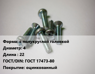 Винт с полукруглой головкой 4х22 ГОСТ 17473-80 оцинкованный